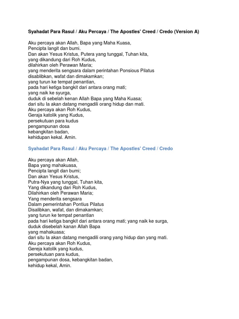 Syahadat Para Doa Aku Percaya Katolik / Doa Aku Percaya Syahadat Para Rasul Dan Maknanya / Check spelling or type a new query.. Syahadat para doa aku percaya katolik. Maybe you would like to learn more about one of these? We did not find results for: Check spelling or type a new query.